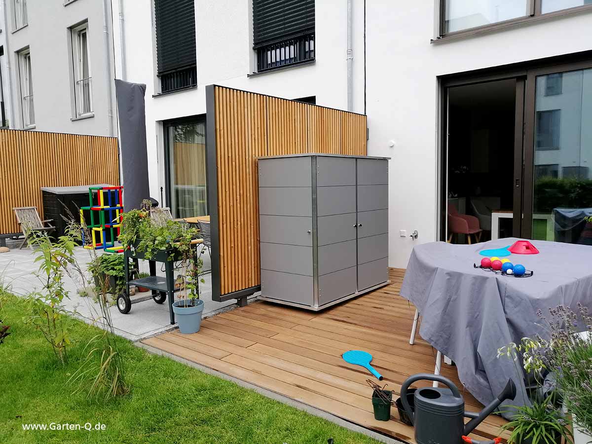 If you want a metal garden box, the garden cabinet-TERAS made of HPL is the right choice. If you are interested in a wooden garden chest, the WEKA-Garten[Q]Teras garden tool cabinet from our licensee WEKA-Holzbau comes into question.